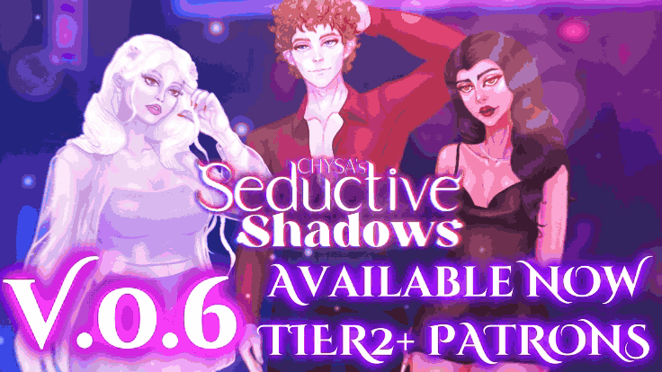 - January 06, 2024 by CHYSA - SEDUCTIVE SHADOWS4#Release, #SeductiveShadows, #VN, #VisualNovel, #V.0.25Hey everyone! The V.0.25 update is now available publicly!! It's finally here for you to enjoy! I'm looking forward to hearing your feedback on this version! If you enjoy the game and would like to su... Continue reading